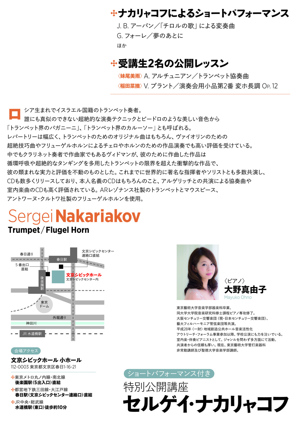 今年もまた、あのトランペットのスーパースターであるセルゲイ・ナカリャコフが、日本の今後を担う若手奏者と向き合う!