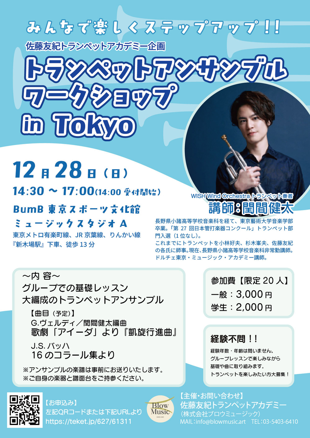 WISH Wind Orchestraなどで活躍中のトランペット奏者 閏間健太氏を講師に迎え、トランペットアンサンブルのワークショップを開催!