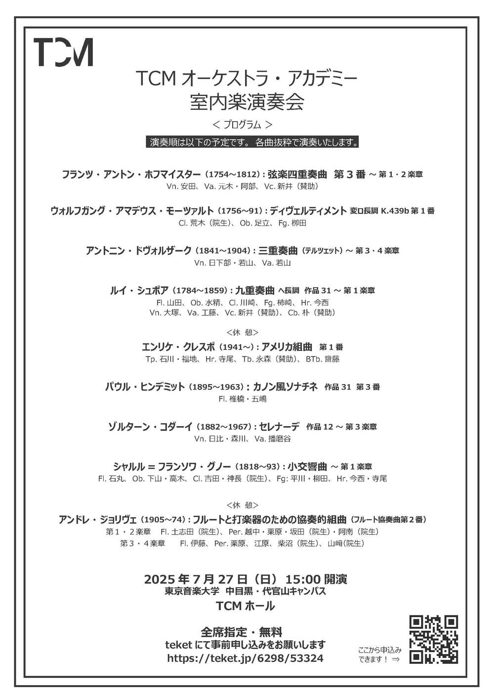 演奏:東京音楽大学TCMオーケストラ・アカデミー