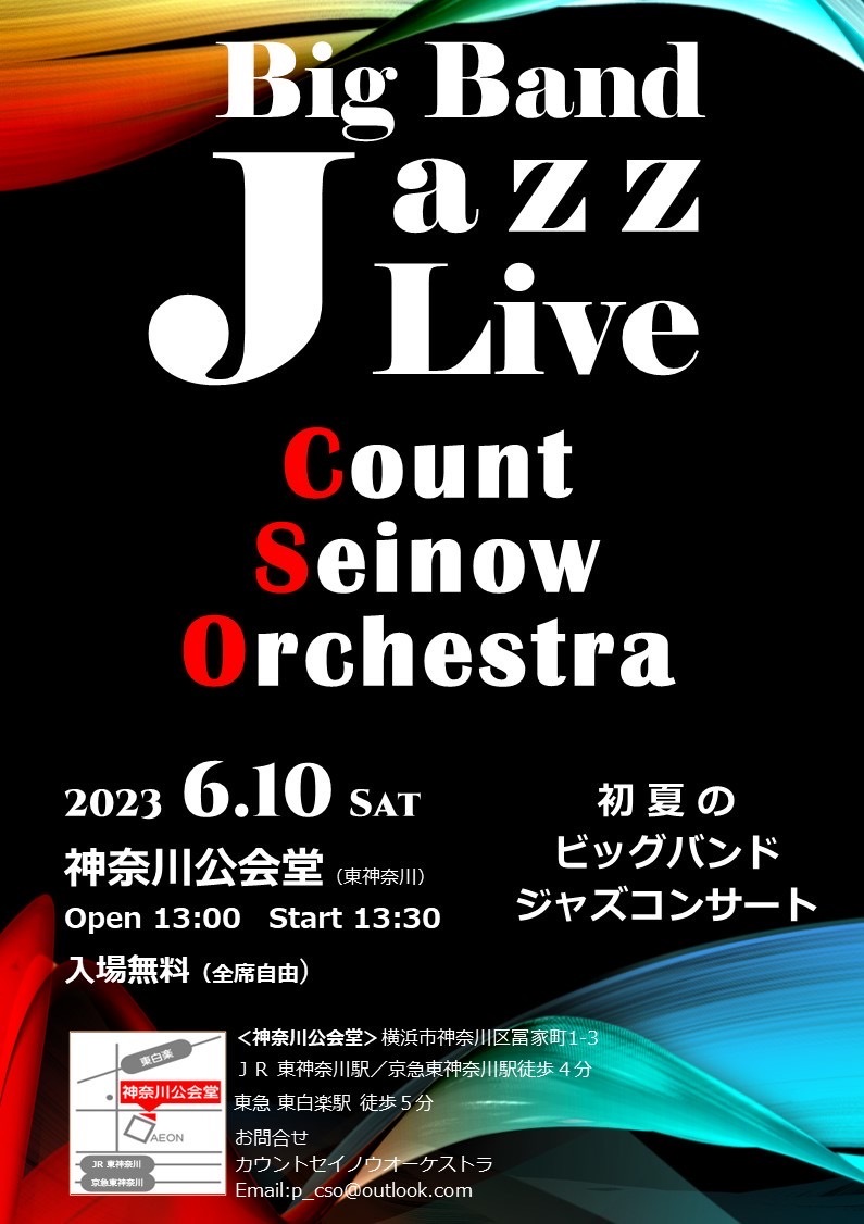 ジャズはあまり聞かないけど興味があるという方や、お子さんから大人まで楽しめるCSOのコンサートとなっていますので、ぜひお越しください!