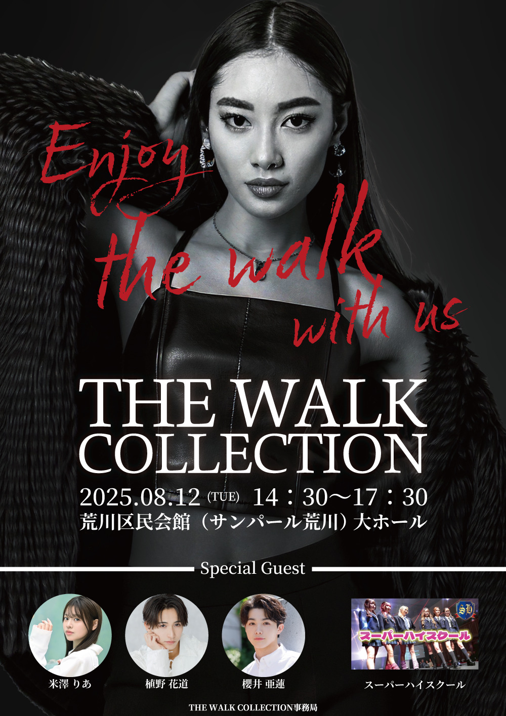 2023年は品川区「きゅりあん」でモデル約50名・観客約150名を動員、2024年は荒川区「サンパール荒川」に会場を移し、モデル約110名・観客約400名を動員。さらに2025年は過去2回の成功事例を踏まえ、「より華やかに、より臨場感あるステージ」を演出し、ファッション界・ウォーキング教育の未来を体験できる場として進化を遂げています。