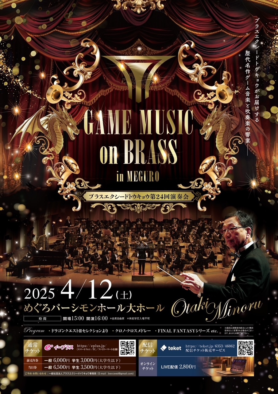 ゲーム音楽において日本のプロ吹奏楽界のパイオニア的存在のブラスエクシードトウキョウの大人気シリーズ『GAME MUSIC on BRASS』が待望のLIVE配信決定‼