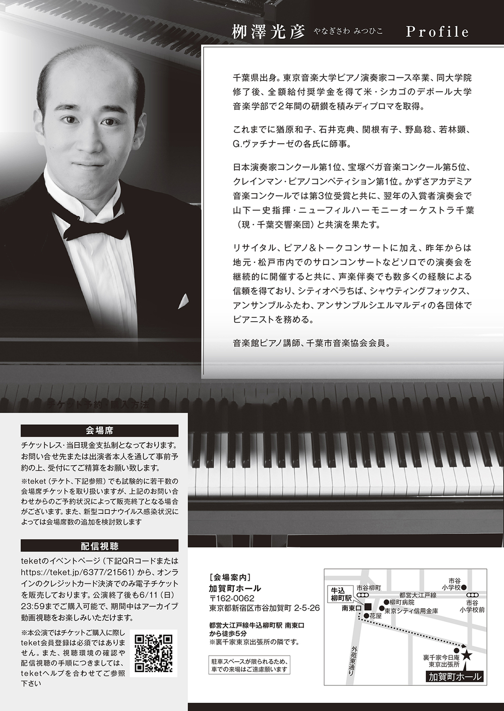 いつになくキチンとしたピアノ&トークコンサートを、ごゆるりとお楽しみ下さい。