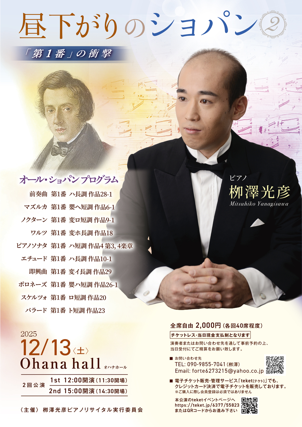 地元・松戸市への恩/音返しのつもりで数年前からこっそりと開催してきたお昼のピアノコンサートシリーズをteketでもお知らせ致します。