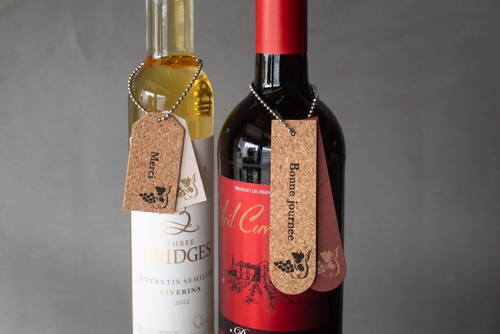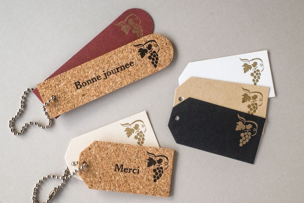 葡萄のワンポイントが可愛いコルクのタグに、ご自身でお好きな文字を印刷していただけます。