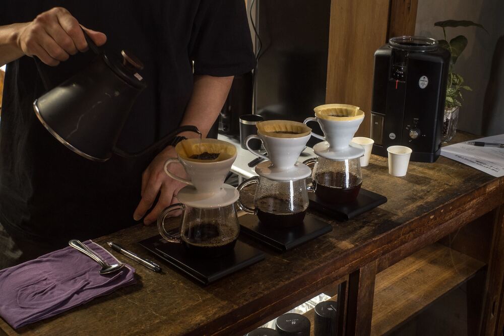 同じ豆でもお湯の温度や注ぎ方、豆の挽き具合、そして使う器具によっても、ほんの少しの違いで味わいは大きく変わります。
