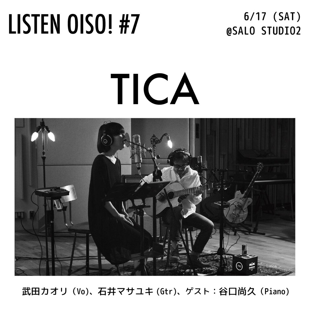 神奈川県の大磯に誕生したスペース、SALOがお届けするライブイベントLISTEN OISO!。第7回は武田カオリ(Vo.)と石井マサユキ(Produce, All inst.)によるグループ、TICAが登場します。2000年のデビュー以来7枚のアルバムを発表し、TICAとして活動しながら各々が様々なプロジェクトにも参加してきたお二人です。月日を経ても色褪せない彼らの音楽と、大磯から長く続く湘南の海岸線のイメージがぴったり重なり出演をお願いしました。今回はゲストに多方面で活躍する音楽家・谷口尚久を迎え3人編成での公演となります。贅沢な夕べになることは間違いありません、お見逃しなく!