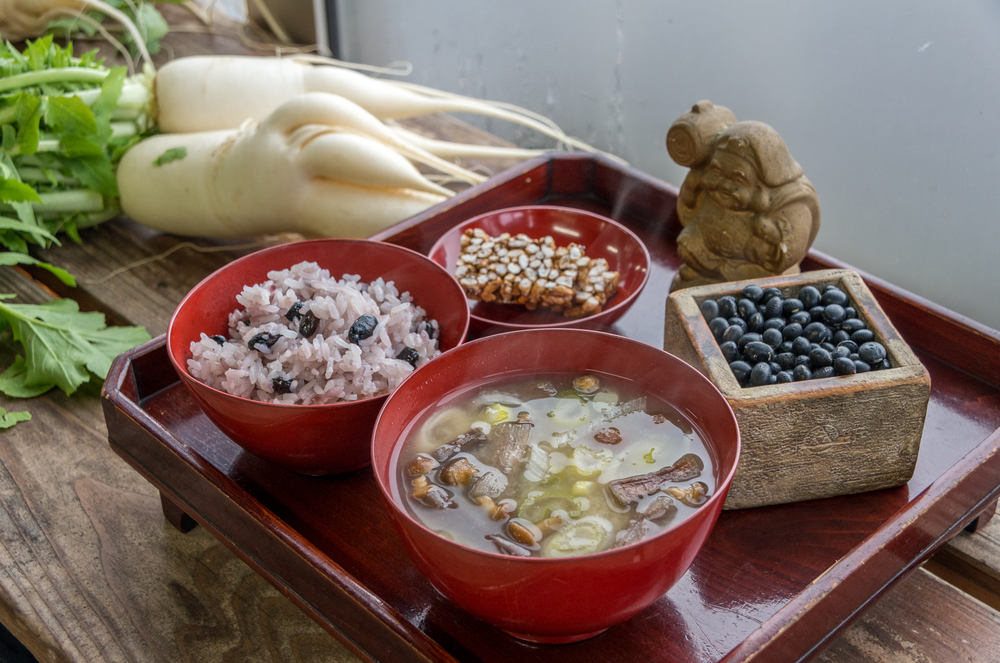 庄内地域の伝統行事である12/9の「大黒様のお歳夜」には、黒豆ごはんと納豆汁が欠かせません。
