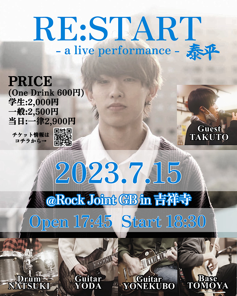 2023年7月15日に開催された泰平3rdワンマンライブ【RE:START】のアーカイブ配信。
