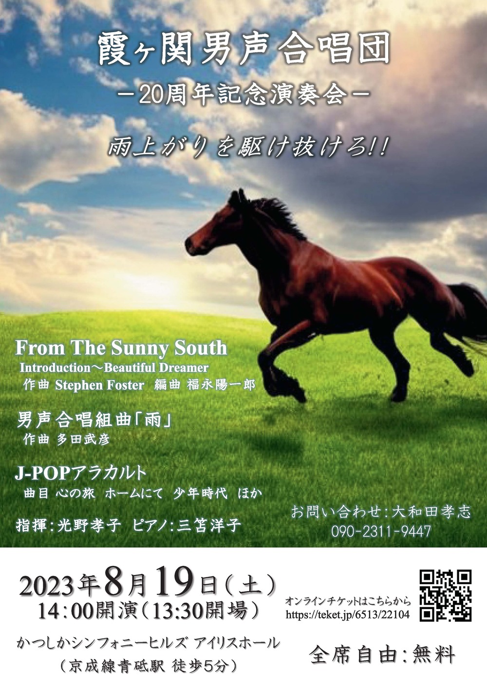 霞ヶ関男声合唱団は、2001年9月に霞ヶ関付近の官庁勤務者を中心に誕生しました。コロナ禍で開催が遅れましたが、男声合唱の魅力を伝えらるよう頑張ります。現在、団員は20名ほど。通年、団員募集中です!(官庁以外の方も大歓迎です)