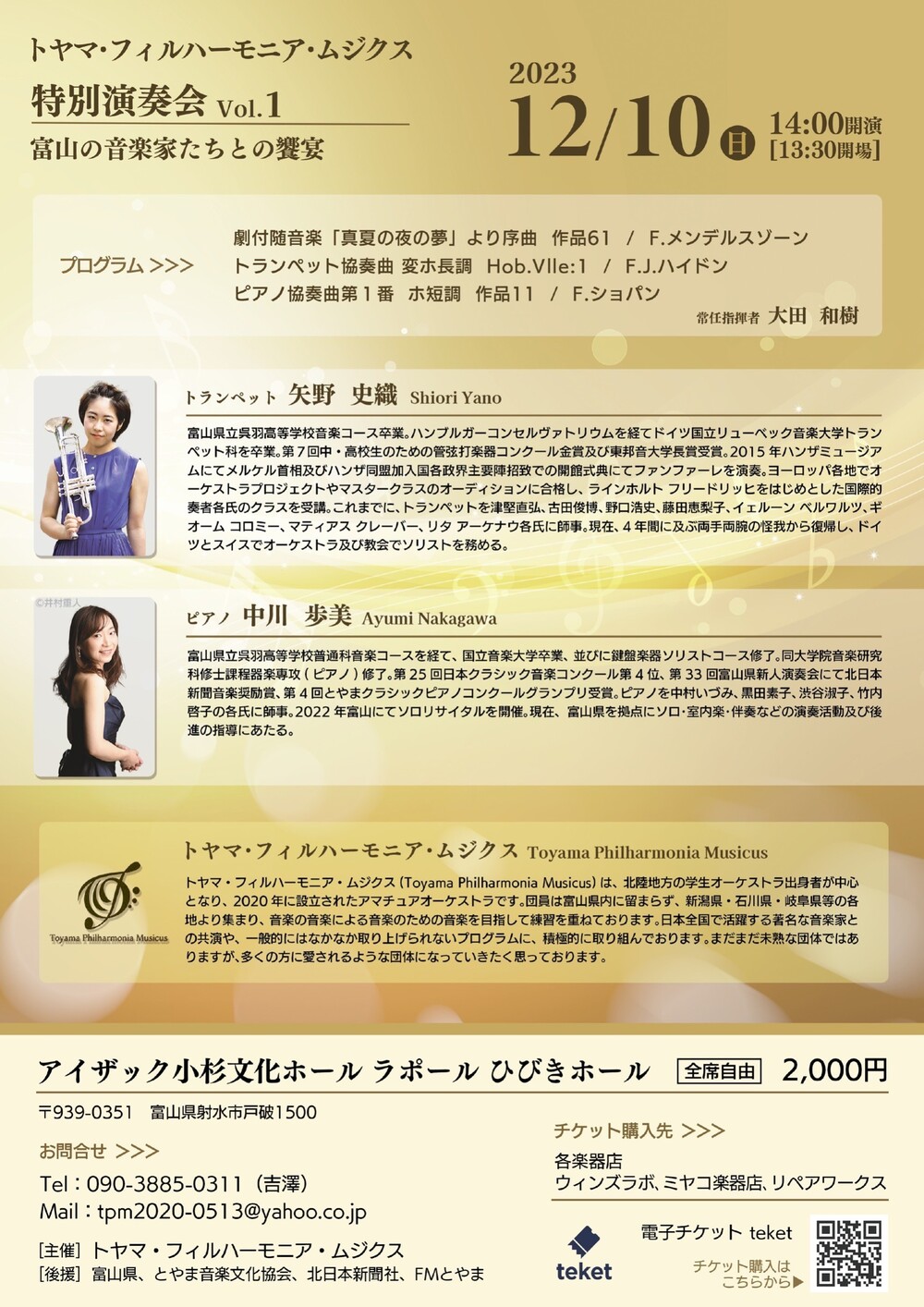 「トヤマ・フィルハーモニア・ムジクス」は、富山県を中心に活動しているアマチュアオーケストラです。