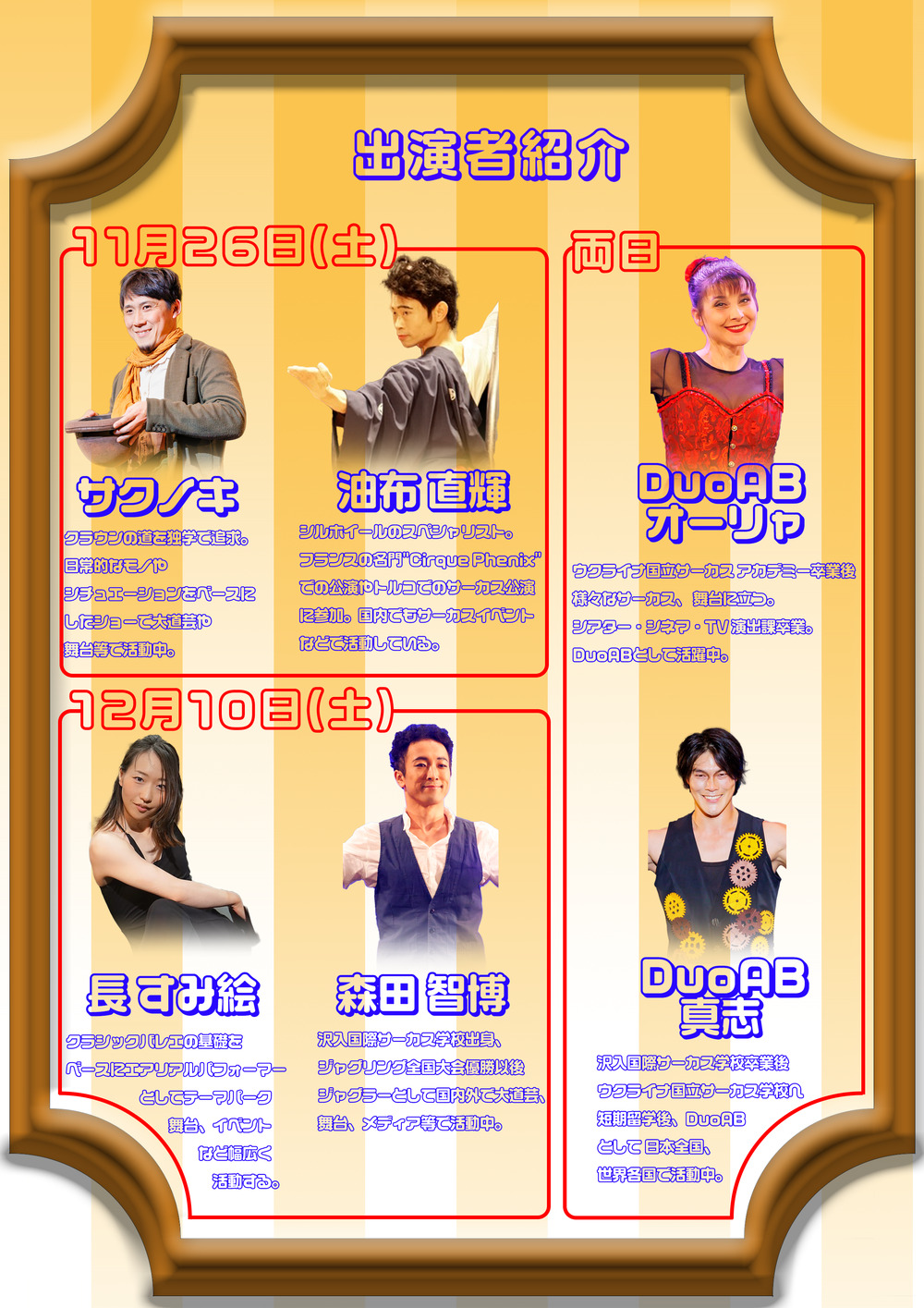 11月公演 アクロバット・シルホイール・クラウニング・他