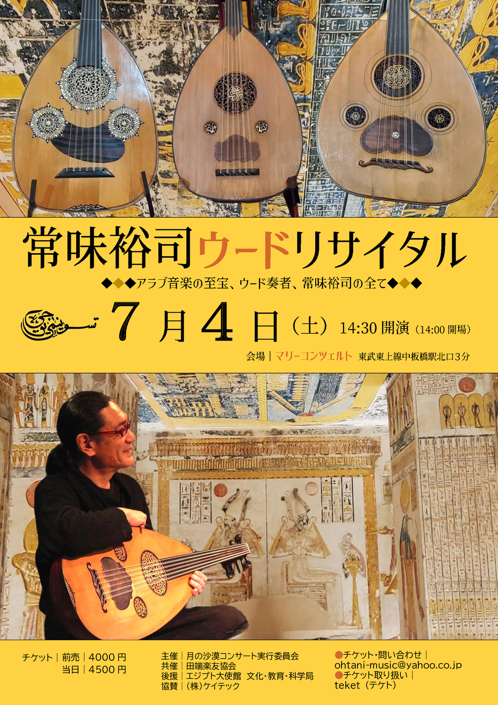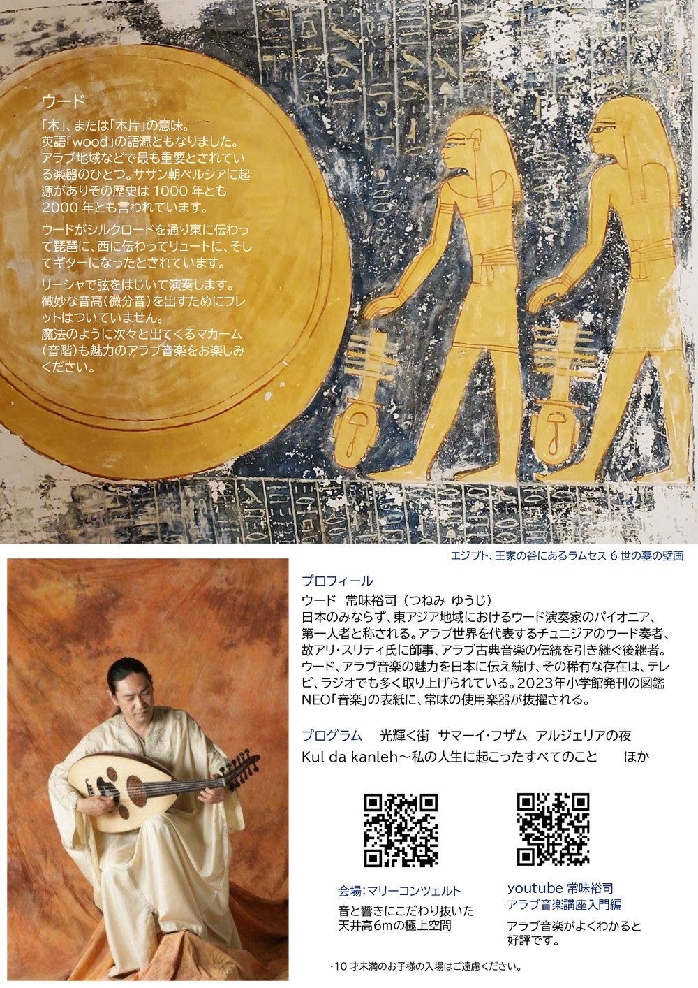 日本におけるアラブ音楽のパイオニアであり、東アジアNo.1と称される常味裕司氏のウードリサイタルです。