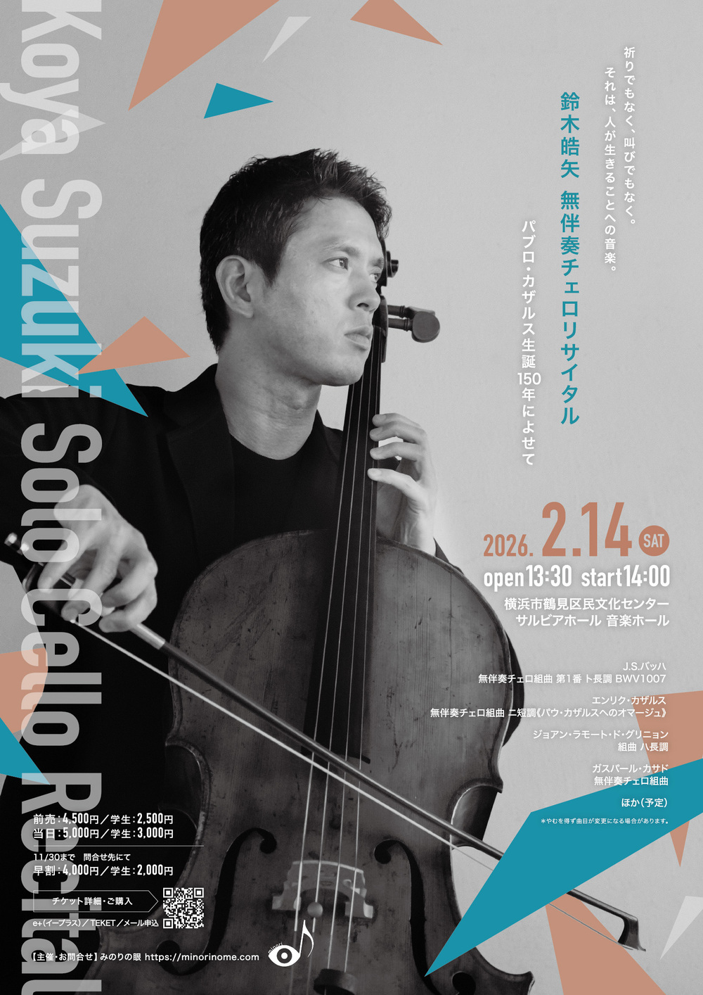 本公演では、バッハ《無伴奏チェロ組曲 第1番》をはじめ、