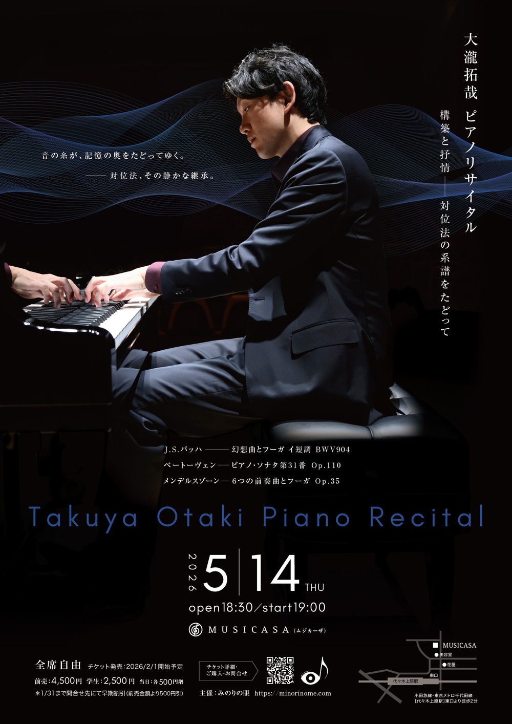 このリサイタルでは、バッハ、ベートーヴェン、メンデルスゾーンという三人の作曲家の作品を通じて、その系譜をひとつの流れとしてたどっていきます。