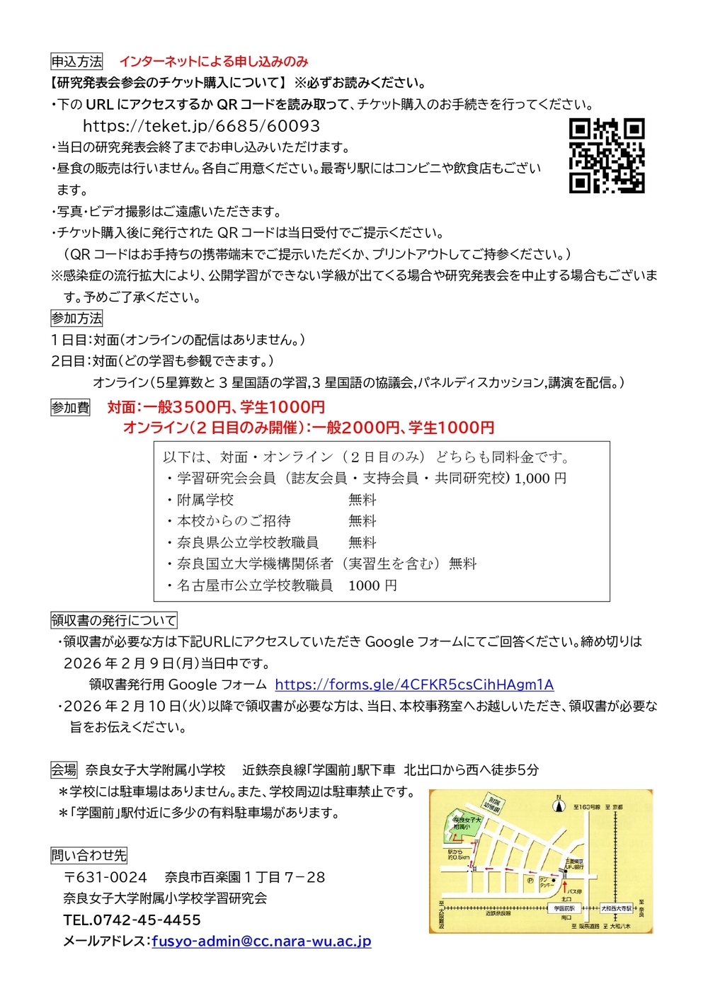 令和7年度 奈良女子大学附属小学校 学習研究発表会の申し込みフォームです。