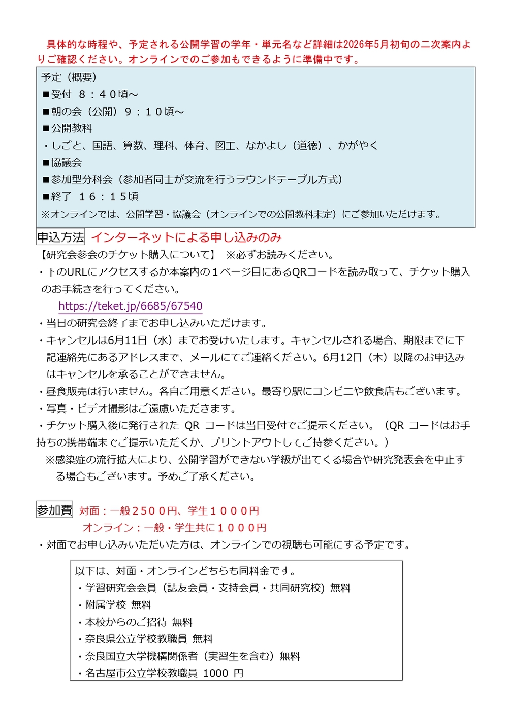 令和8年度 奈良女子大学附属小学校 学習研究集会の申し込みフォームです。