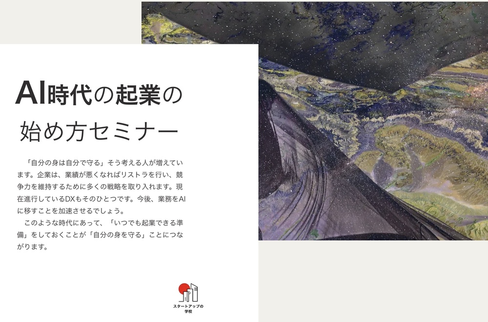「自分の身は自分で守る」そう考える人が増えています。企業は、業績が悪くなればリストラを行い、競争力を維持するために多くの戦略を取り入れます。現在進行しているDXもそのひとつです。今後、業務をAIに移すことを加速させるでしょう。このような時代にあって、「いつでも起業できる準備」をしておくことが「自分の身を守る」ことにつながります。