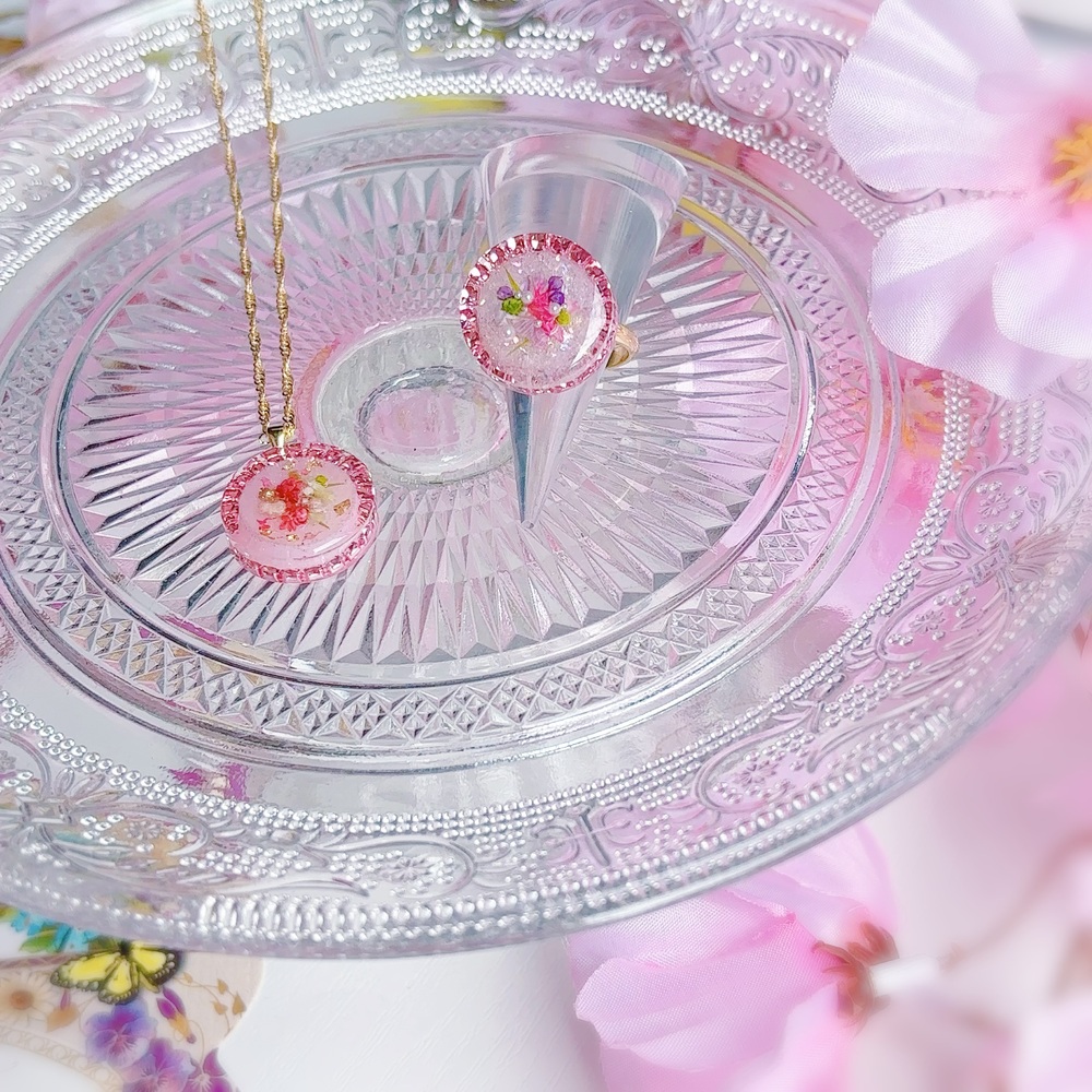 『レジンで作る 桜色ゼリーのリング/ペンダント』