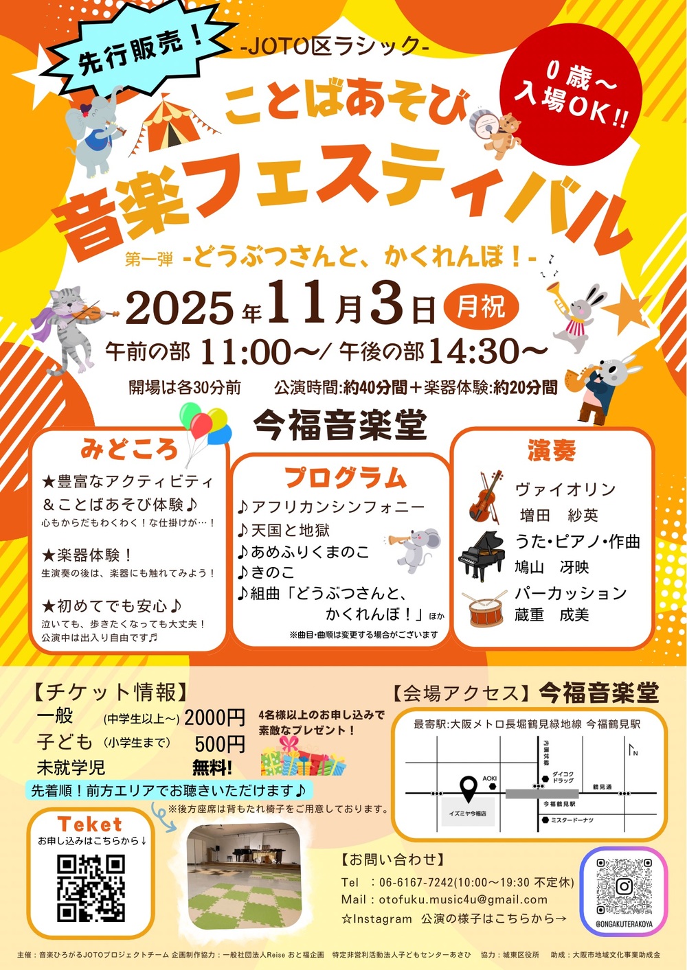 昨年に引き続き、今福音楽堂にて親子向け音楽コンサートを開催します!