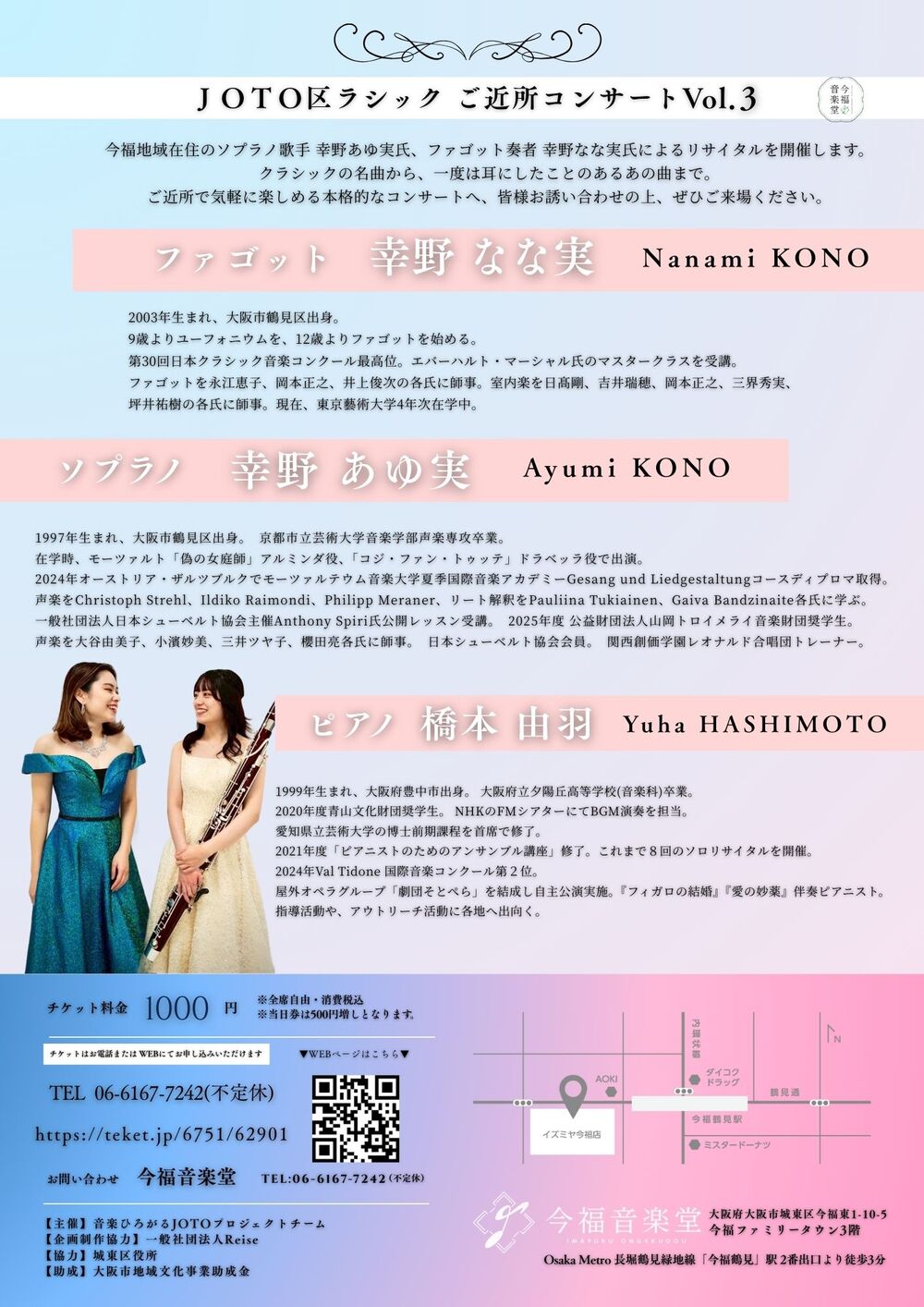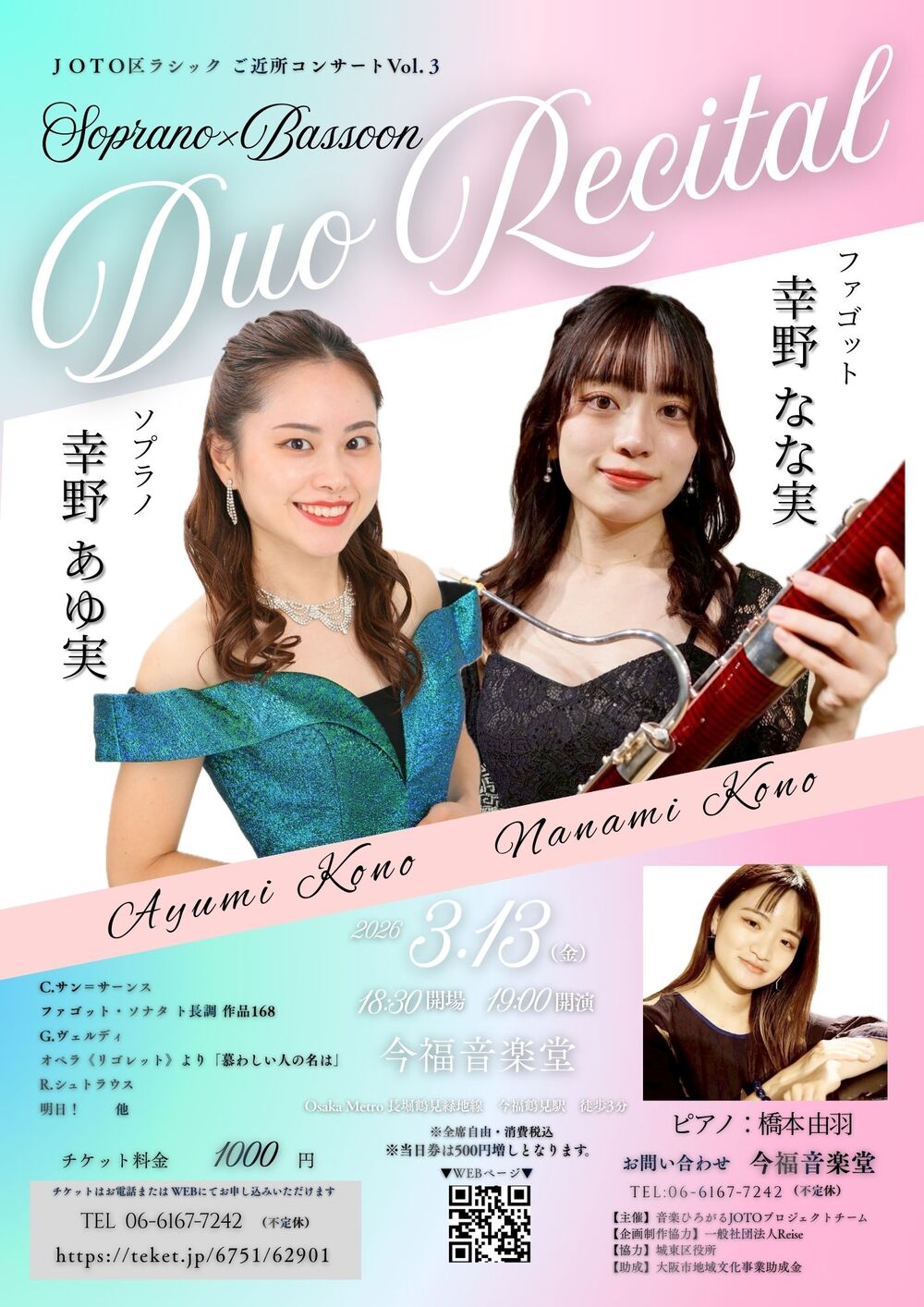 ★今福地域在住のソプラノ歌手 幸野あゆ実、ファゴット奏者 幸野なな実によるリサイタルを開催します。