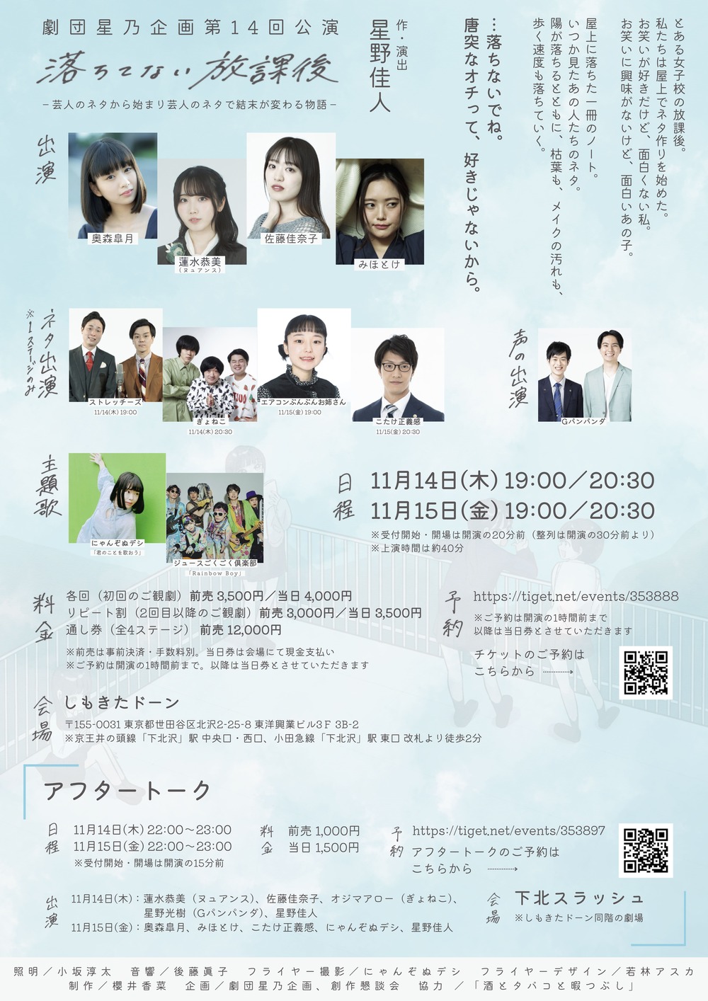 『落ちてない放課後』のうち、15日(金)20:30上演回のアーカイブ配信+特典映像のセットをご購入いただけます。