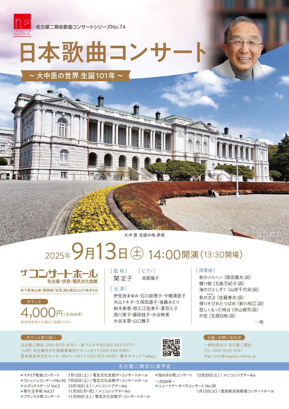 大中恩氏、弊会日本歌曲コンサートではおなじみの関定子氏を監修とし、