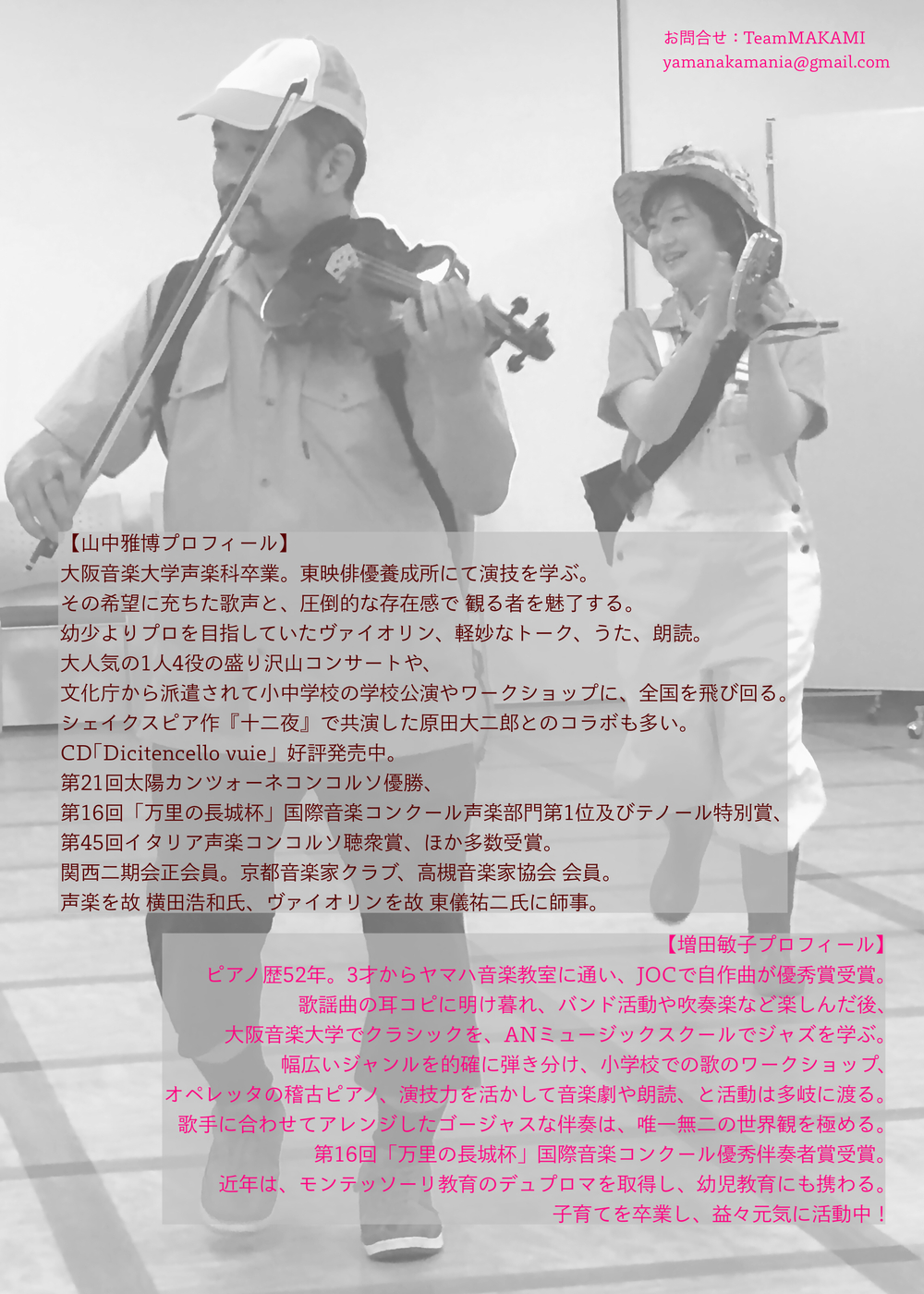 関西二期会の山中雅博が、歌にヴァイオリンに朗読にと大ハッスル!ピアノはモチロン増田敏子。