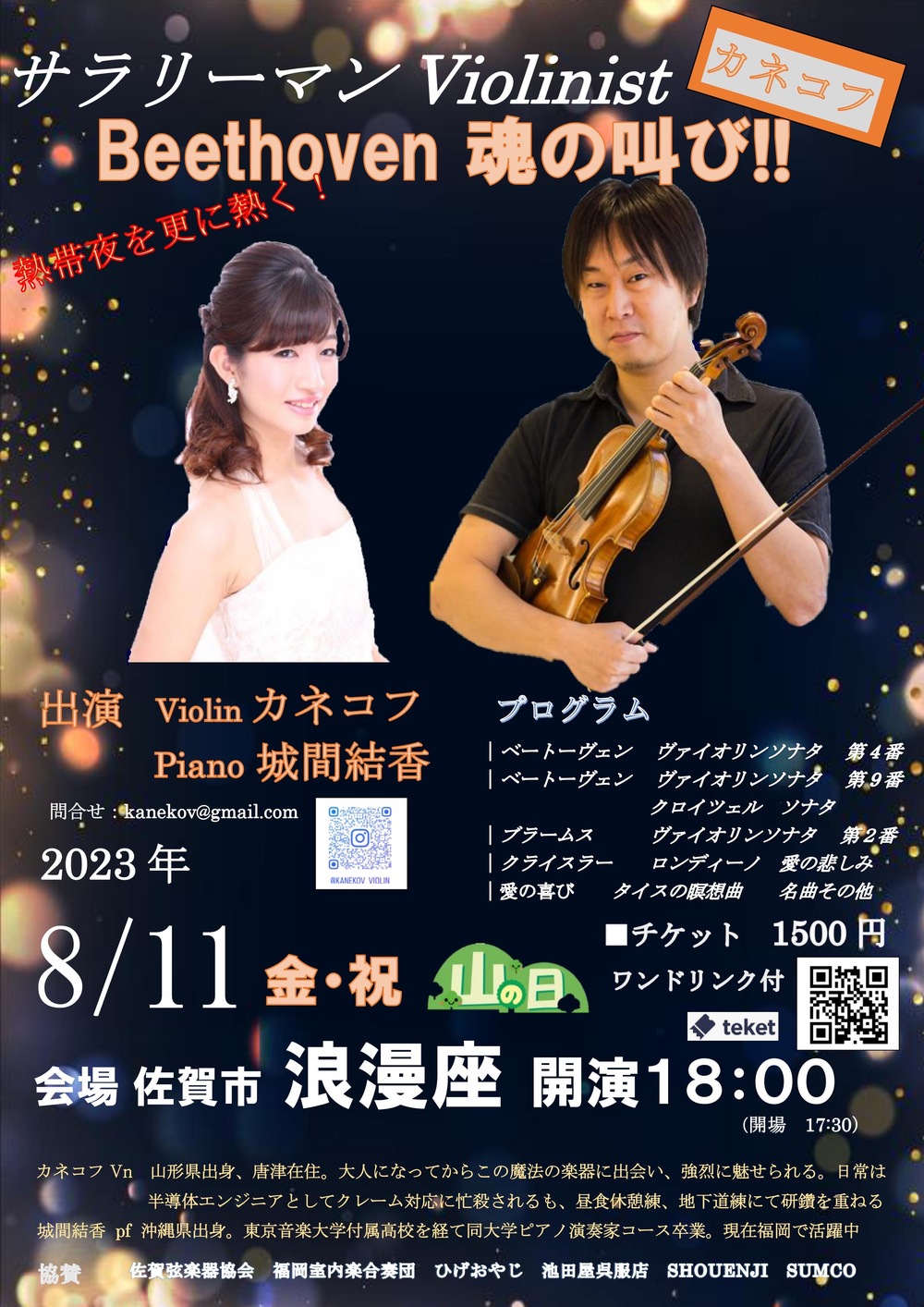大人になってからviolinの魅力に魅せられ、楽器を始めた熱血系サラリーマンバイオリニスト。