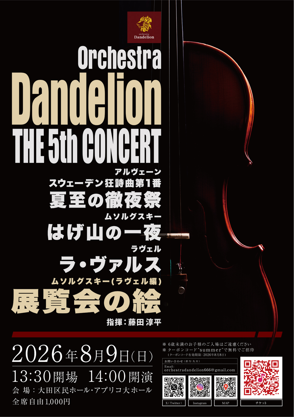 お問い合わせフォームURL:https://twitter.com/dandelion_orch