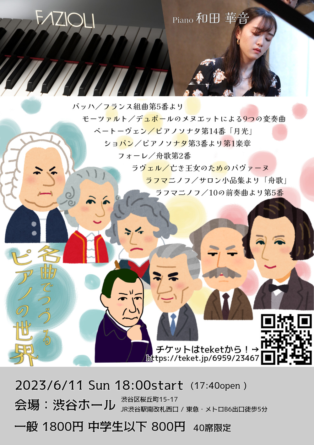 バッハからラフマニノフまで、クラシックピアノの名曲を存分に楽しめるハイライト的なプログラムです。