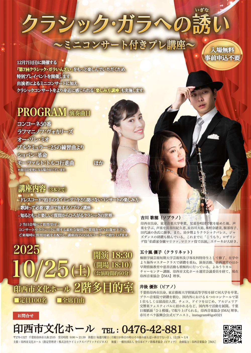 出演者:吉川歌穂(ソプラノ)、五十嵐優子(クラリネット)、井後優弥(ピアノ)