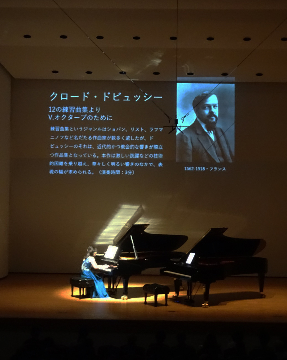 *舞台上に曲目解説を投影、演奏作品を深堀り!