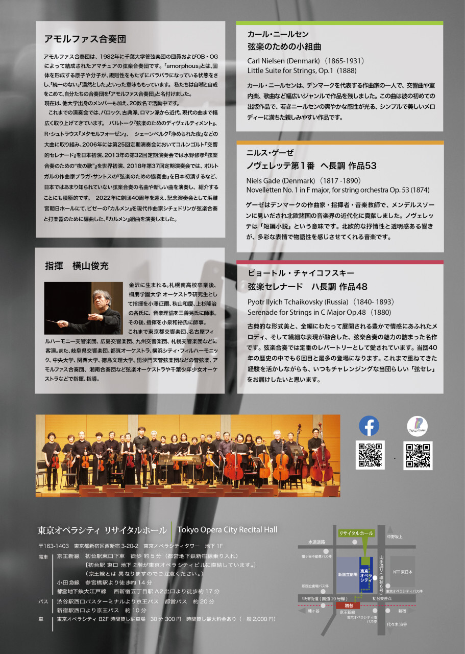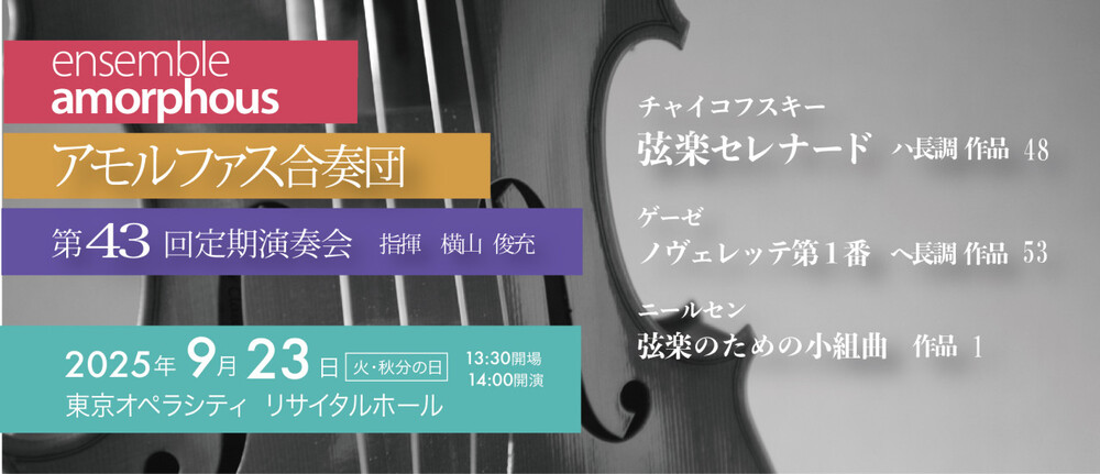 アモルファス合奏団は1982年創立の弦楽合奏団です。今回は当団の原点ともいえるチャイコフスキーの「弦楽セレナード」を演奏します。弦楽合奏の魅力あふれるこの曲をぜひ聴きにきてください!