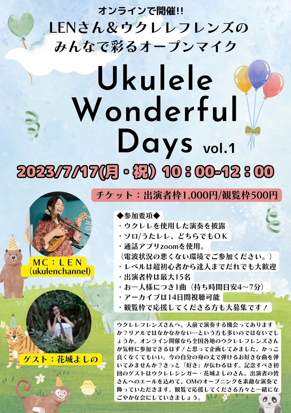 ・出演者は演奏中カメラONにてご参加ください。顔出ししない方はウクレレが映るようにカメラの位置の調整をお願いします。