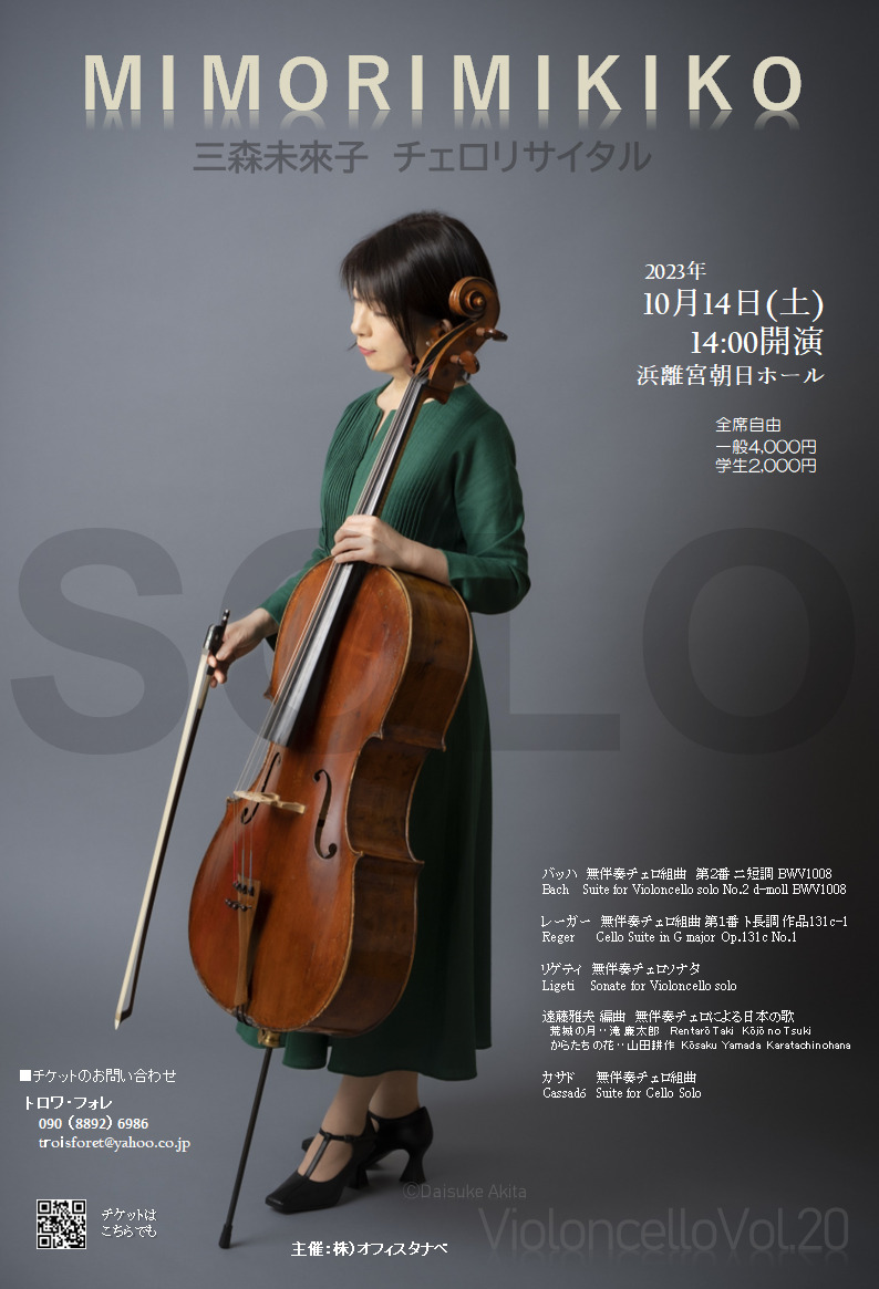 バロック時代の巨匠、バッハから、現代音楽作曲家のリゲティまで、そして懐かしの日本の歌曲をチェロ一本で奏でます。