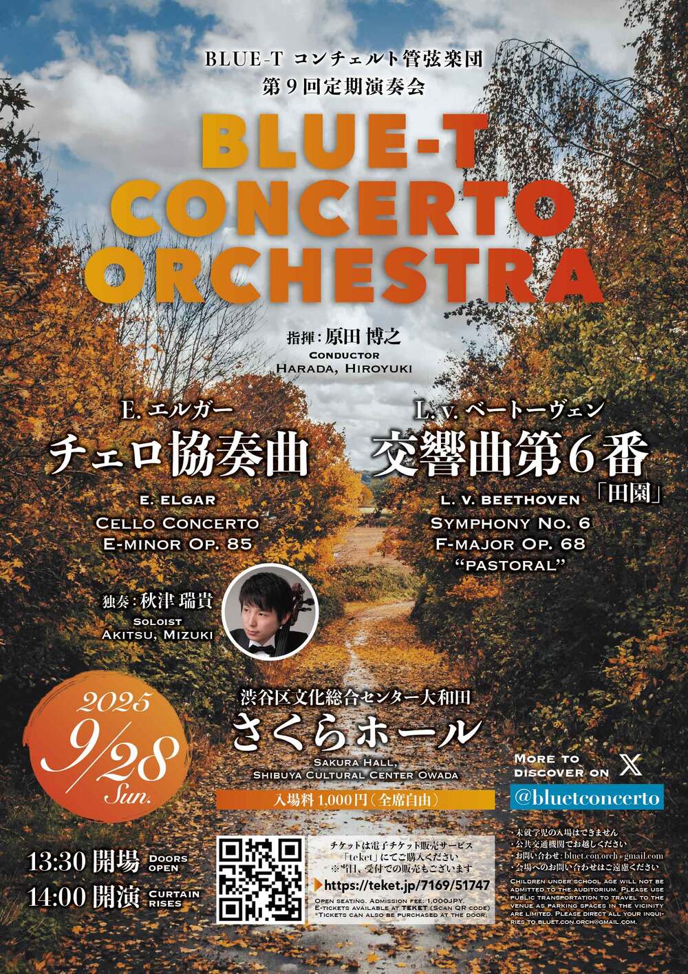 今回は、ベートーヴェンの交響曲第6番と、秋津瑞貴さんをお迎えし、エルガーのチェロ協奏曲を演奏します!