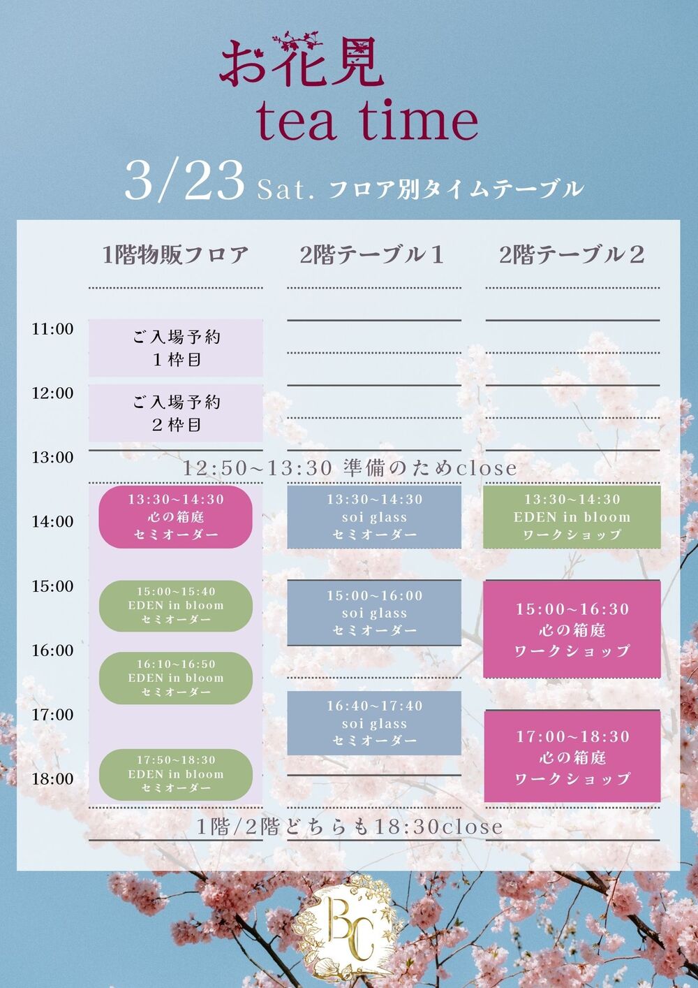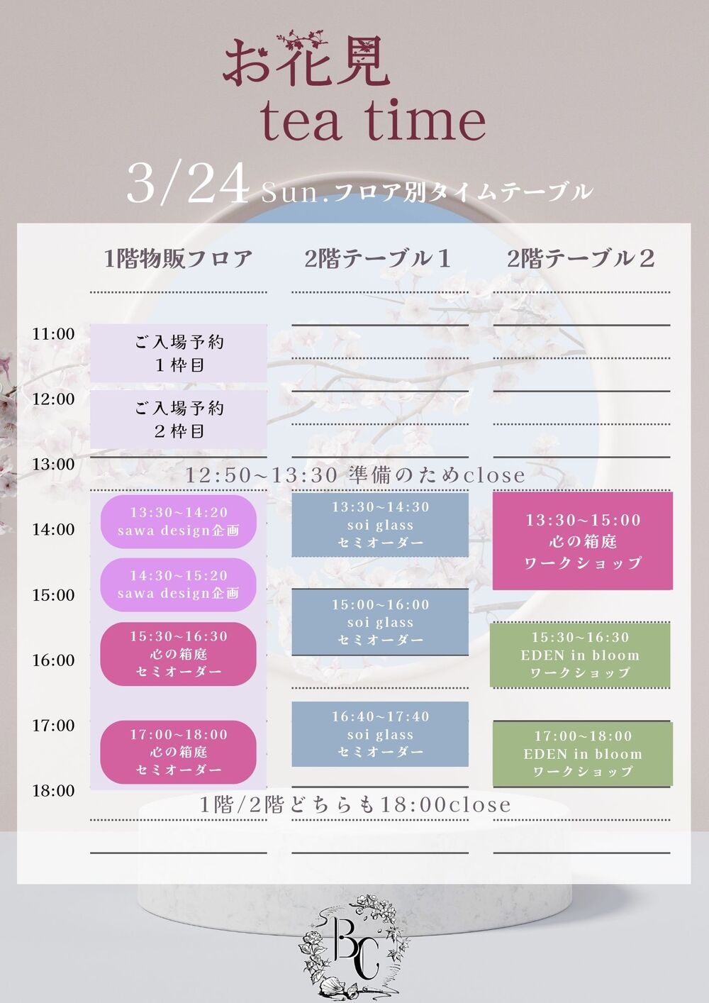 ・13:30〜18:30 1階お買い物、ご観覧はフリー入場