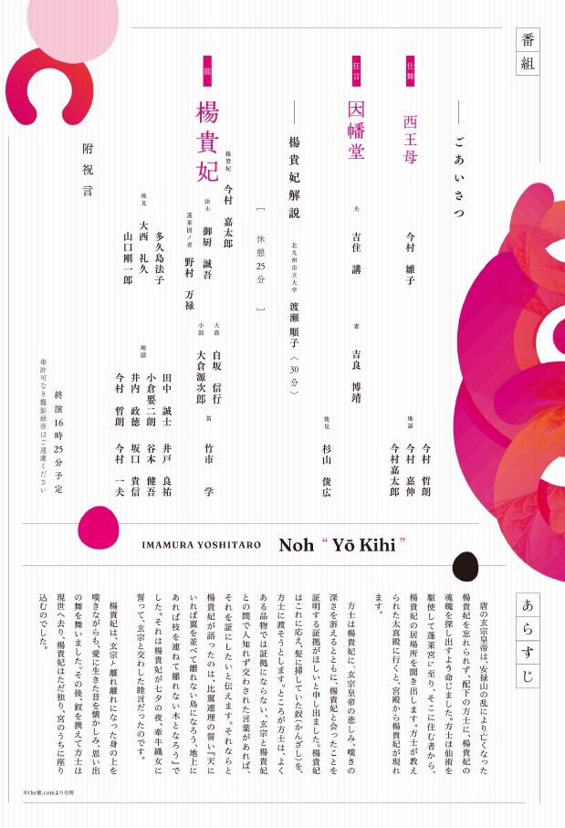 - シテ(楊貴妃):今村嘉太郎