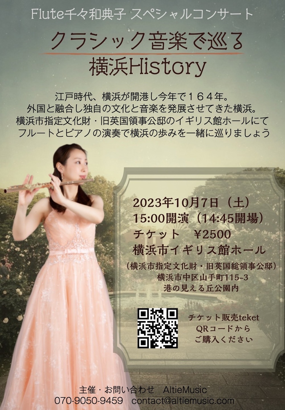 横浜市指定文化財・旧英国領事公邸のイギリス館ホールにてフルートとピアノの演奏で横浜の歩みを一緒に巡りましょう