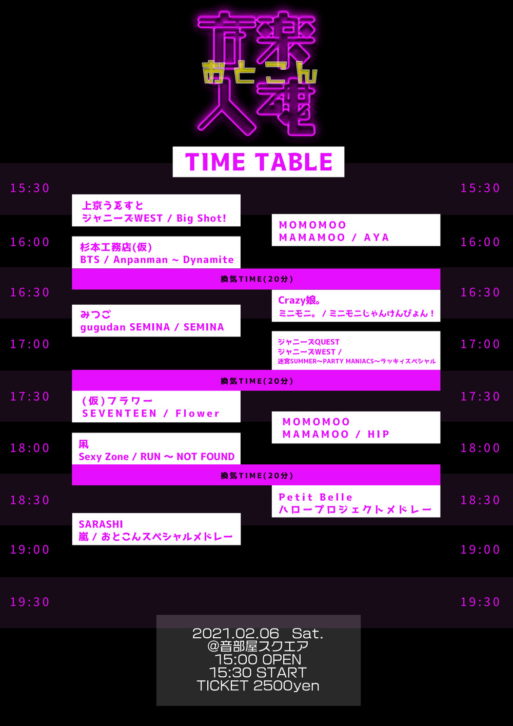 開場/開演情報・チケット販売期間