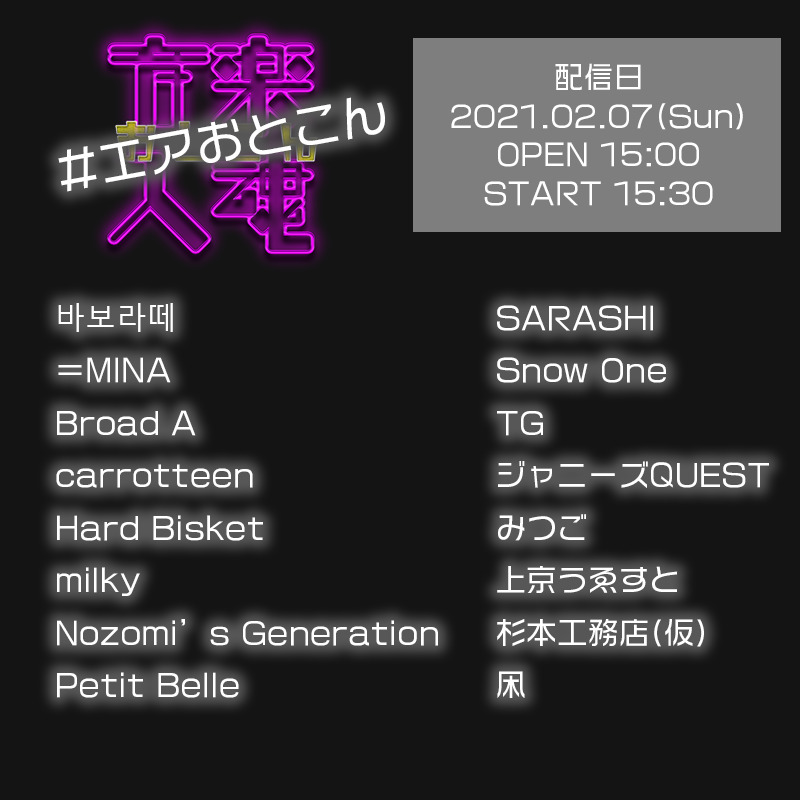 昨年3月に大阪で開催予定だったおとこんが延期し、2月6日に開催予定だった東京おとこんも緊急事態宣言を受け延期…主催の日程運のなさに嘆きながら、どうにか違う形でも開催したい!という思いでエアおとこんを開催することになりました。