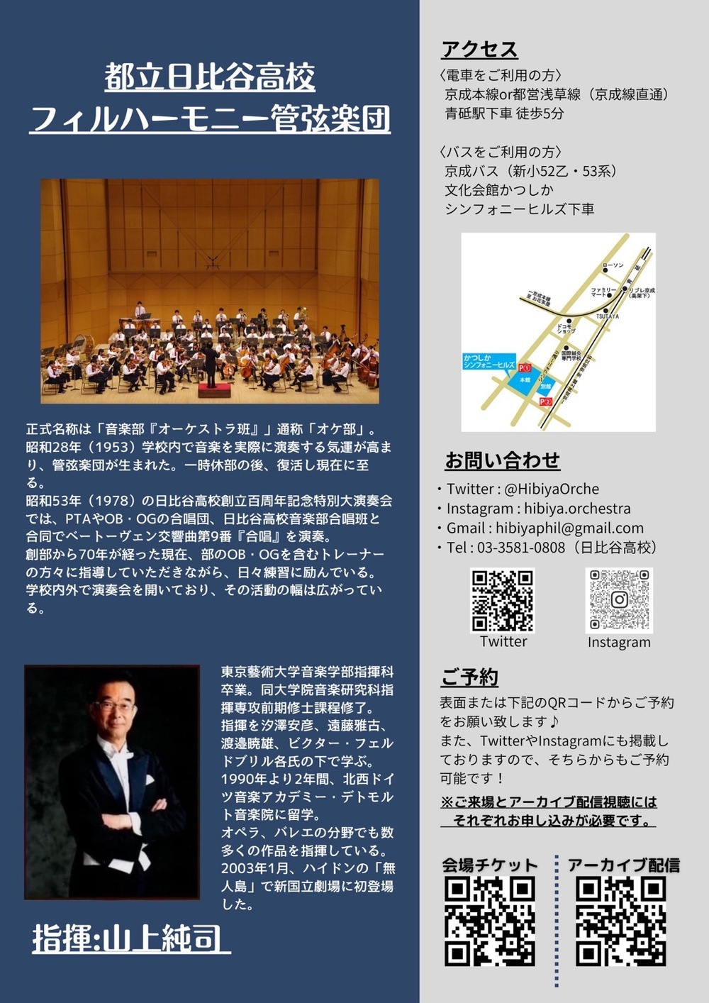 こんにちは!都立日比谷高校フィルハーモニー管弦楽団です! 10月に開催する定期演奏会に向け、部員62名日々楽しく活動しております。