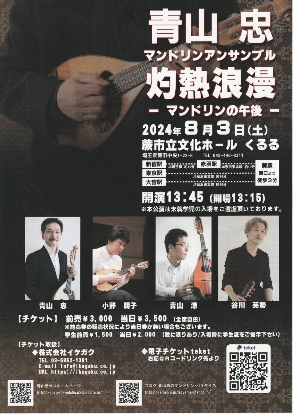 ジャンルにとらわれない幅広い活動を展開するマンドリンの第一人者である青山忠を中心に、全国で活動を行うマンドリンアンサンブル。コンサートでは、マンドリンの音色を生…