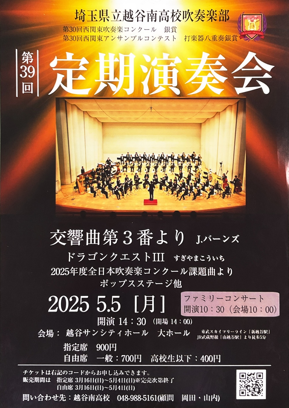 午後の部(定期演奏会)は未就学児入場不可で、三部構成形式の演奏会となっております。内容は下記のとおりです。
