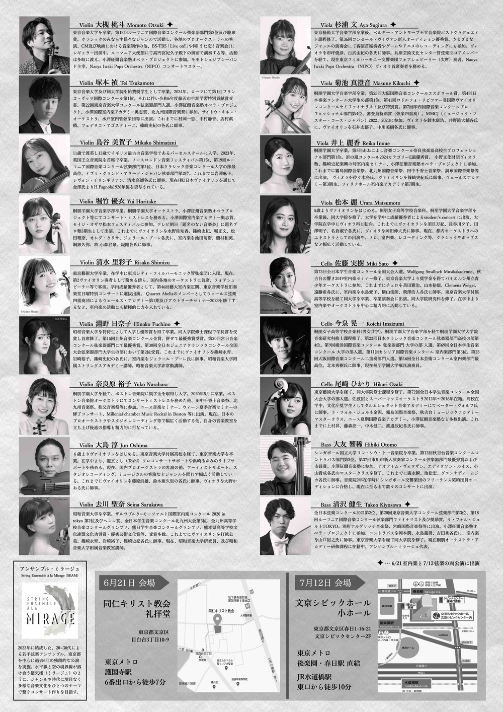 ヴァイオリン:塚本禎・島谷美賀子・堀竹優衣・清水里彩子・奈良原裕子・大島淳・去川聖奈