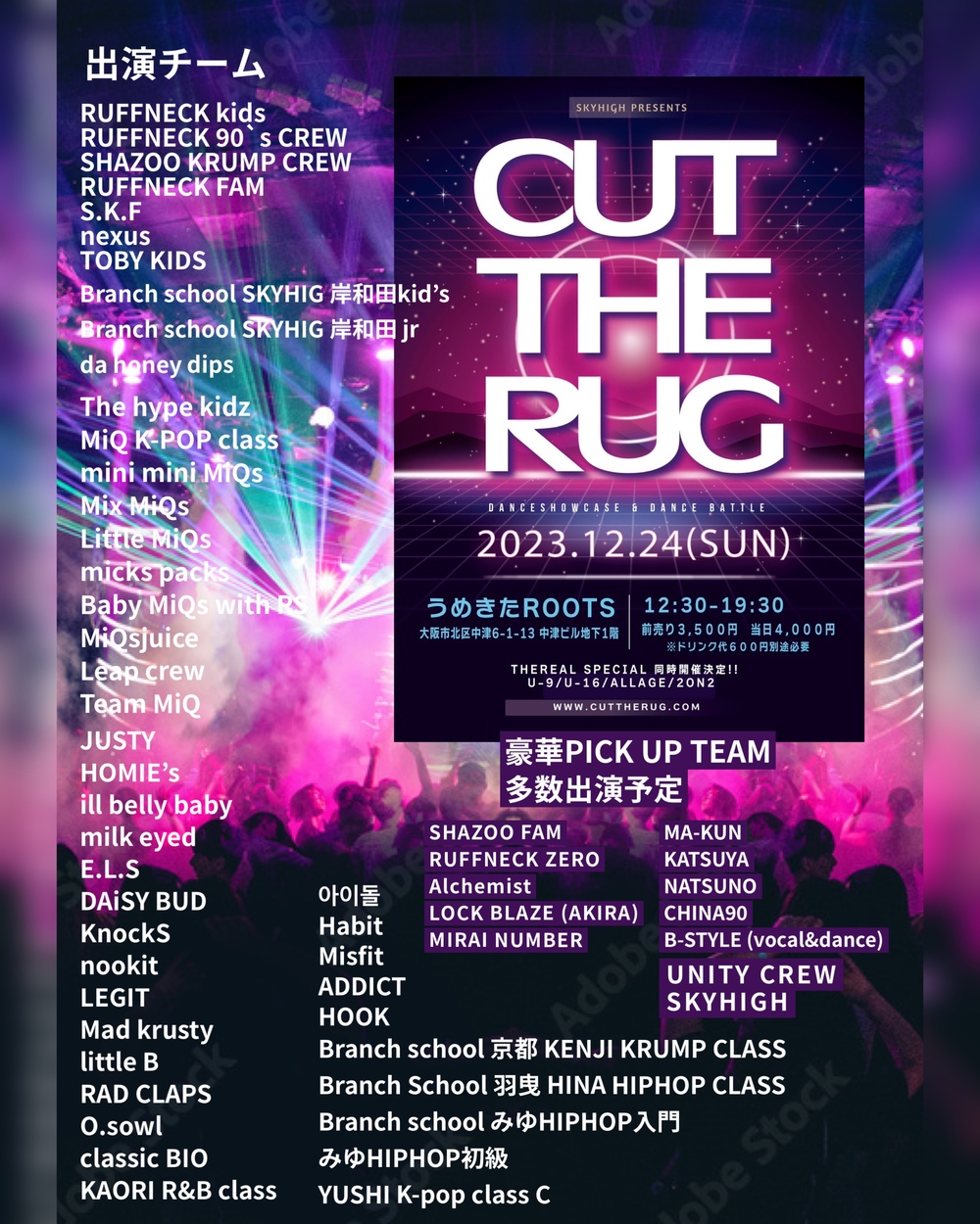 毎月開催 BATTLE EVENT “THEREAL” SHOW CASE / NUMBER EVENT “CUT THE RUG” “MASTERPIE…