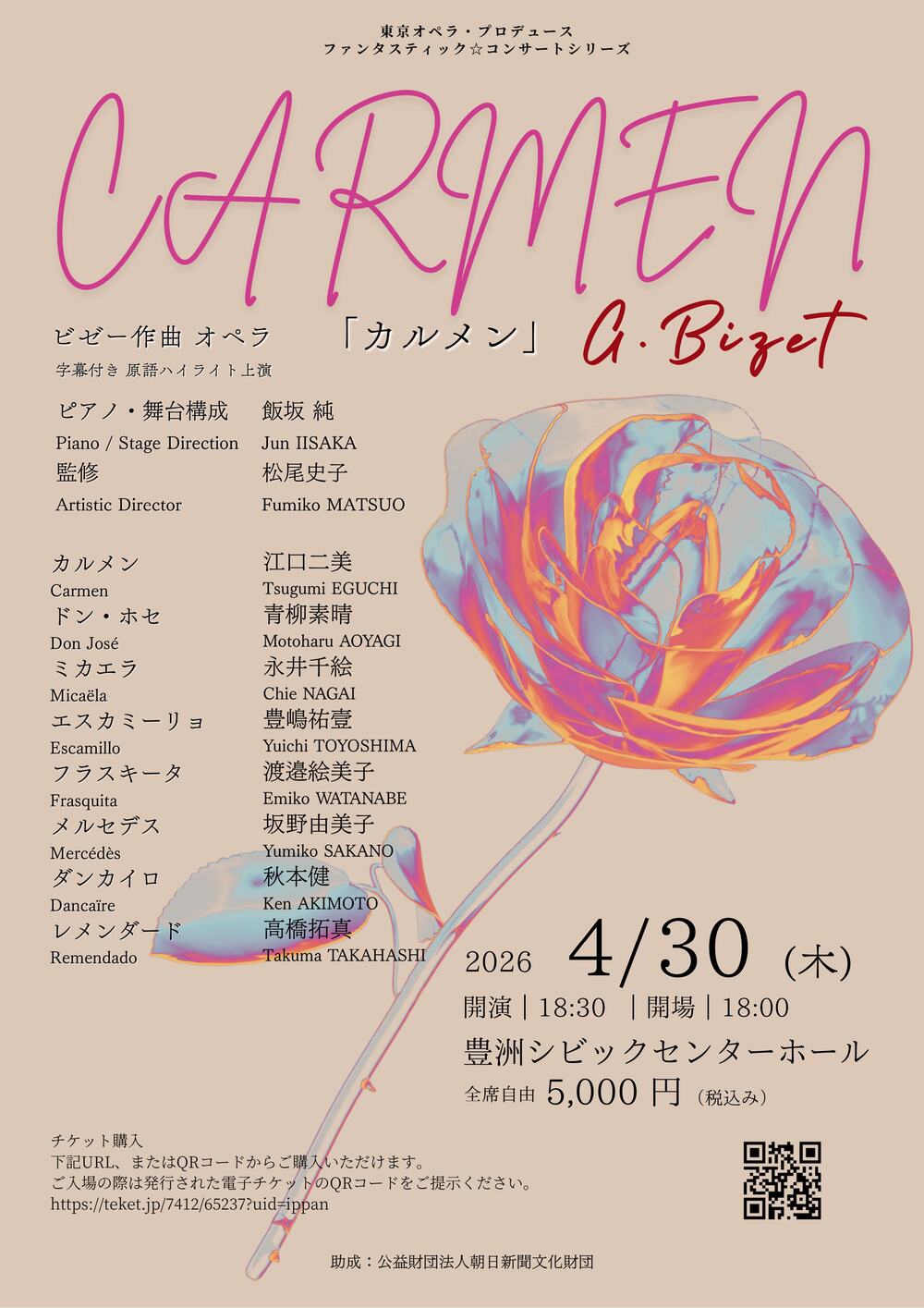 ビゼー作曲 オペラ「カルメン」 (ピアノ伴奏・字幕付き ハイライト公演)