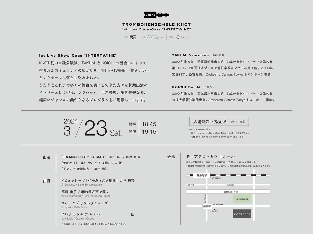 その他のお問い合わせ先:【本公演に関するお問い合わせ】trombonensemble.knot@gmail.com 宛