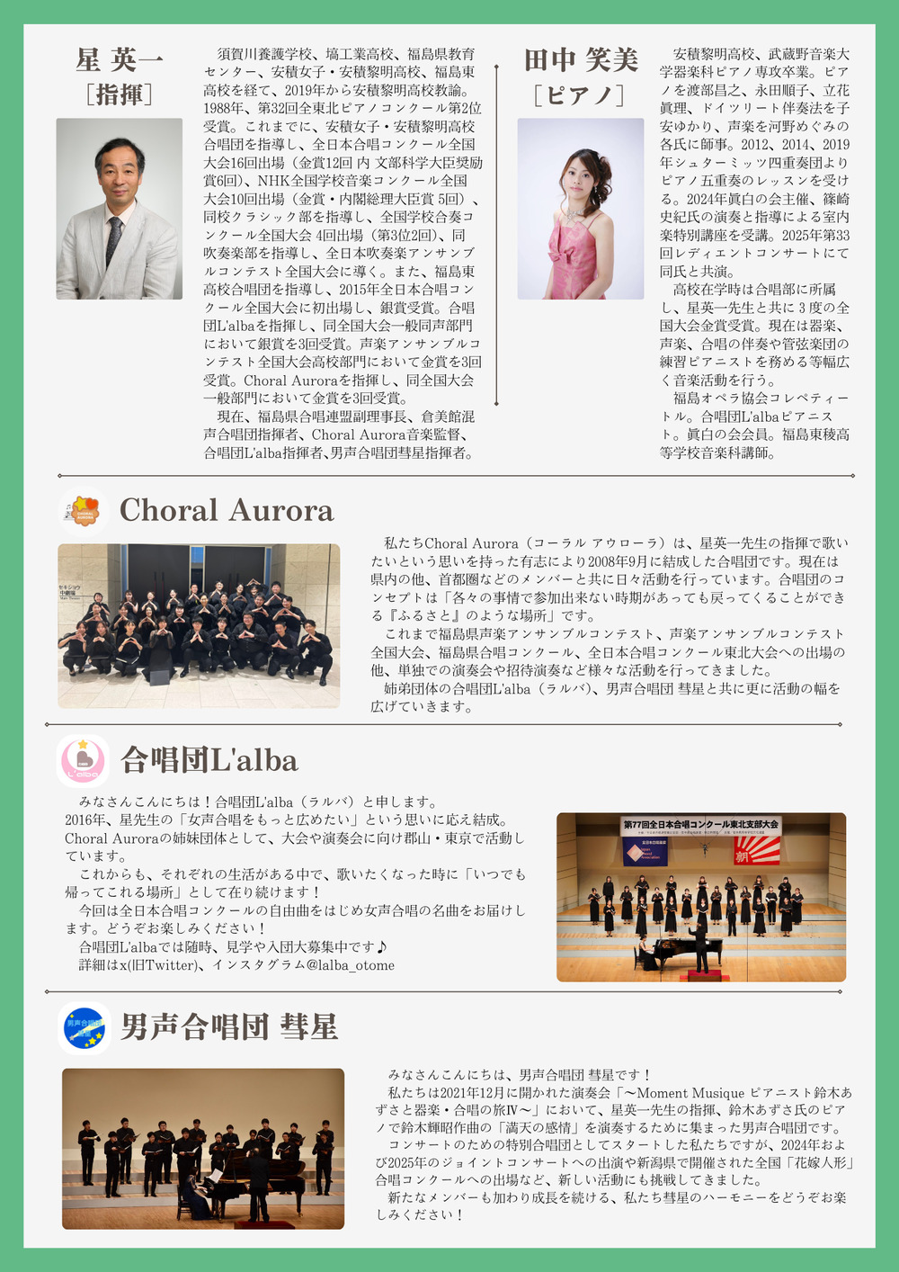 [合 唱] Choral Aurora、合唱団L’alba、男声合唱団 彗星